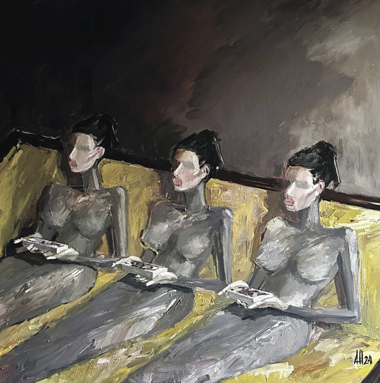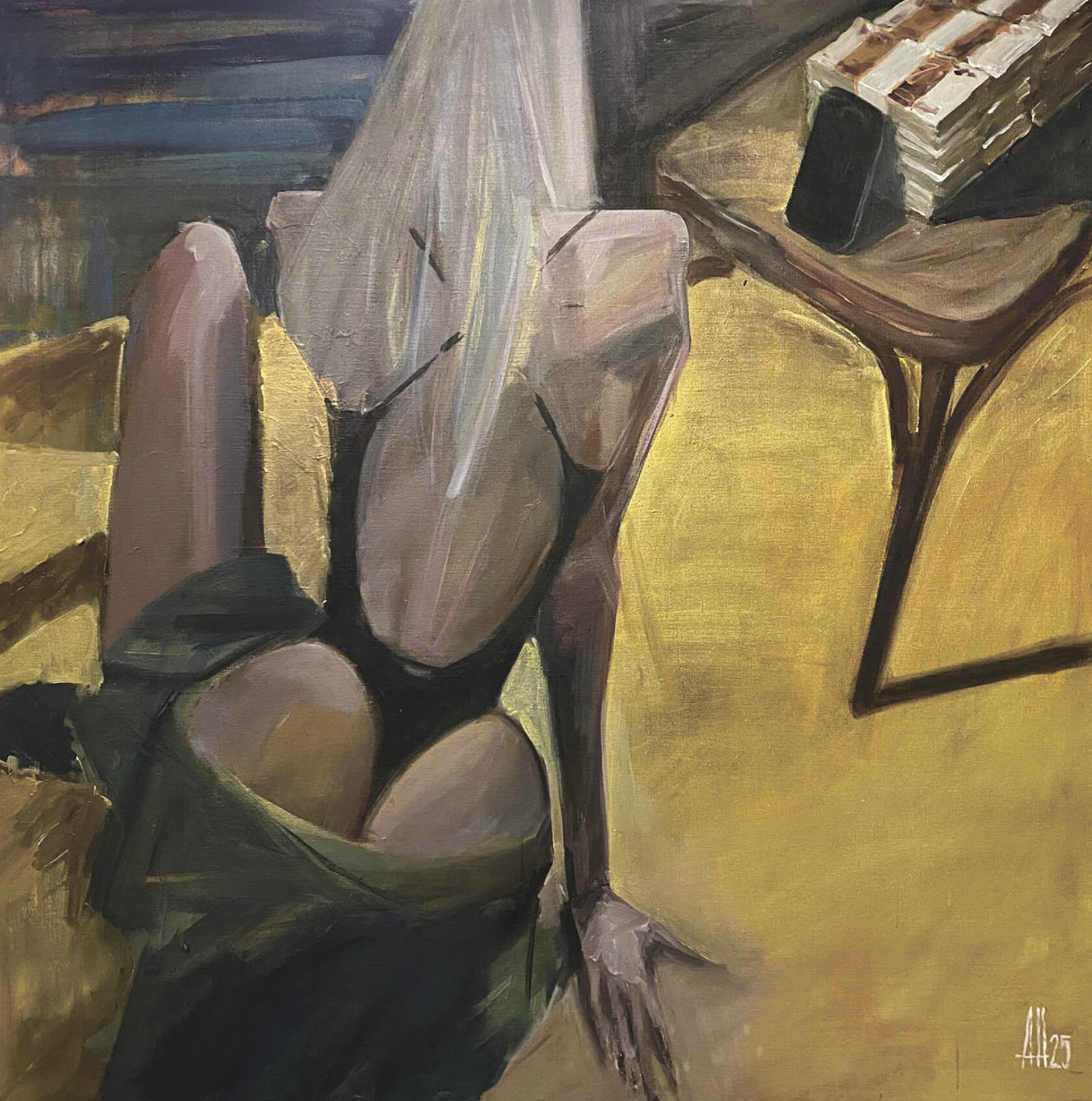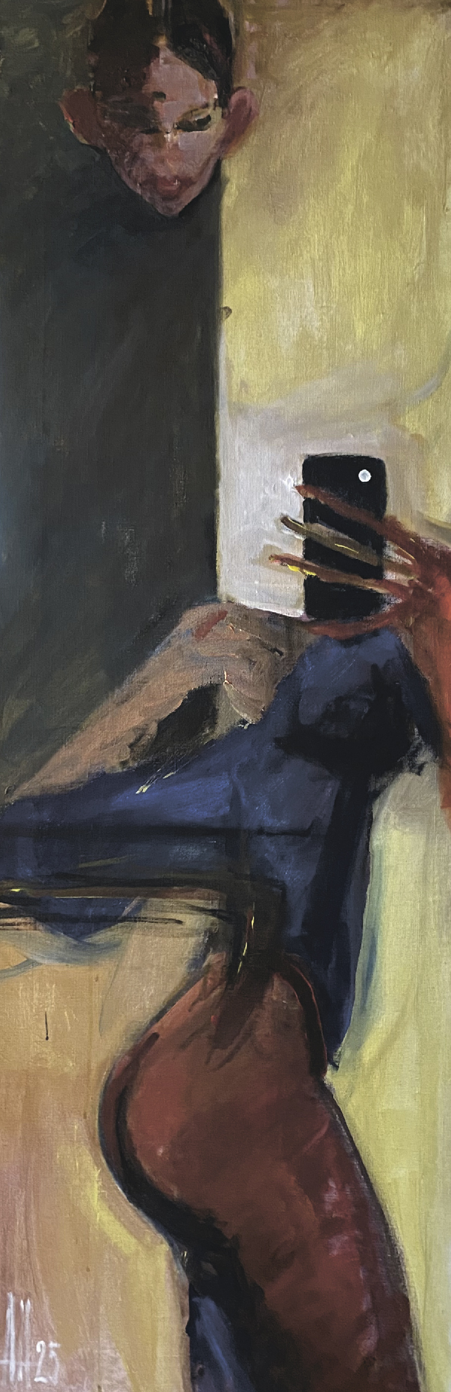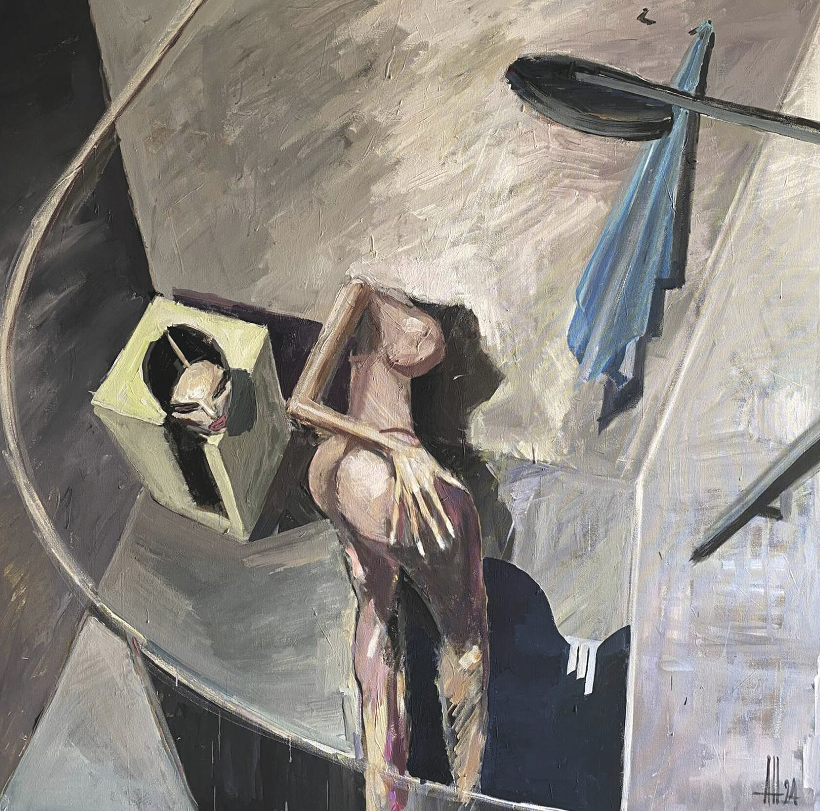 My artworks are the result of an intentional fusion of an academic approach to oil painting with the graphic precision of architectural sketches. I use this combination to reveal motion within the stillness of human figures — a vital tool for exploring balance between opposing states.