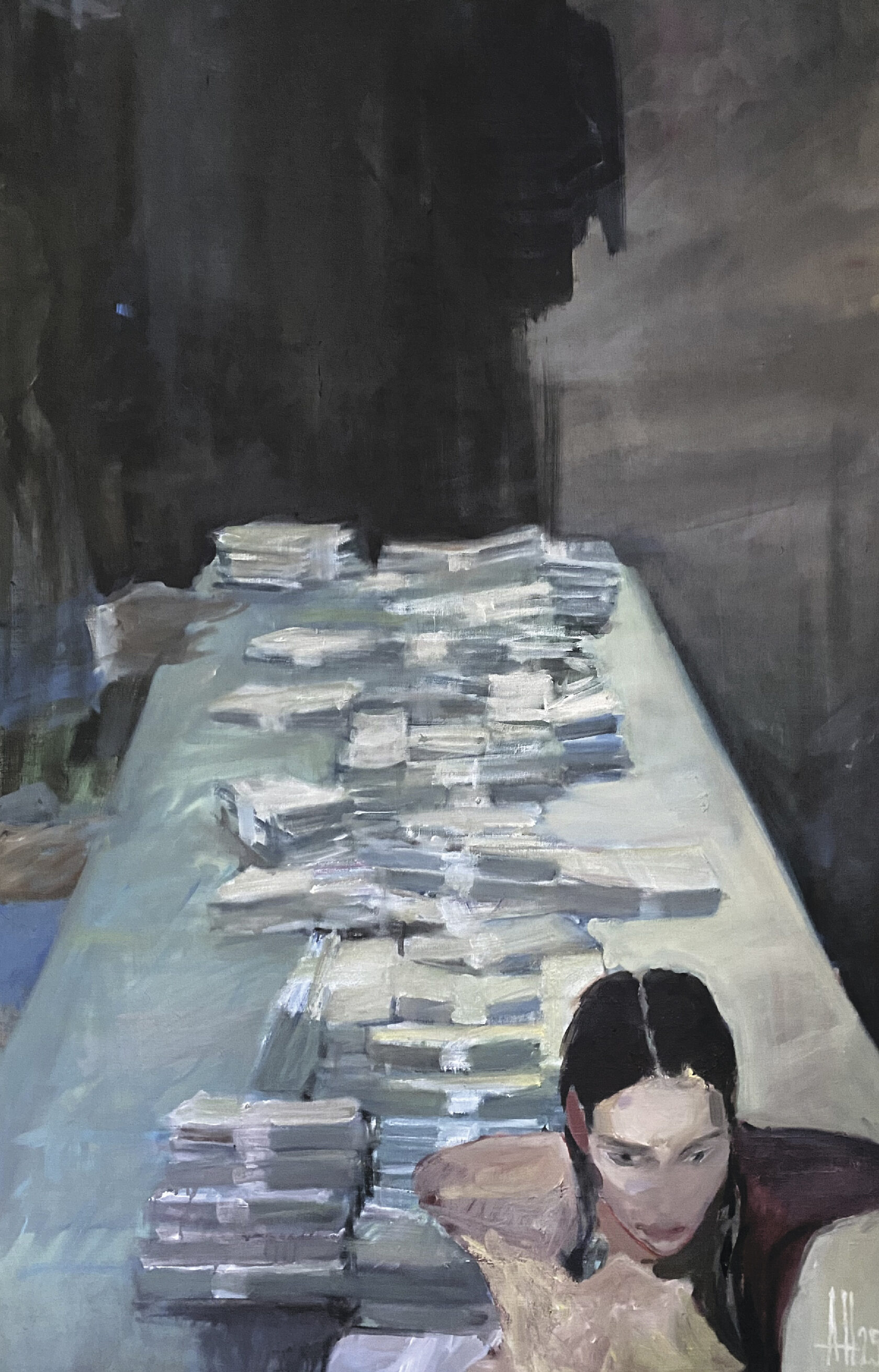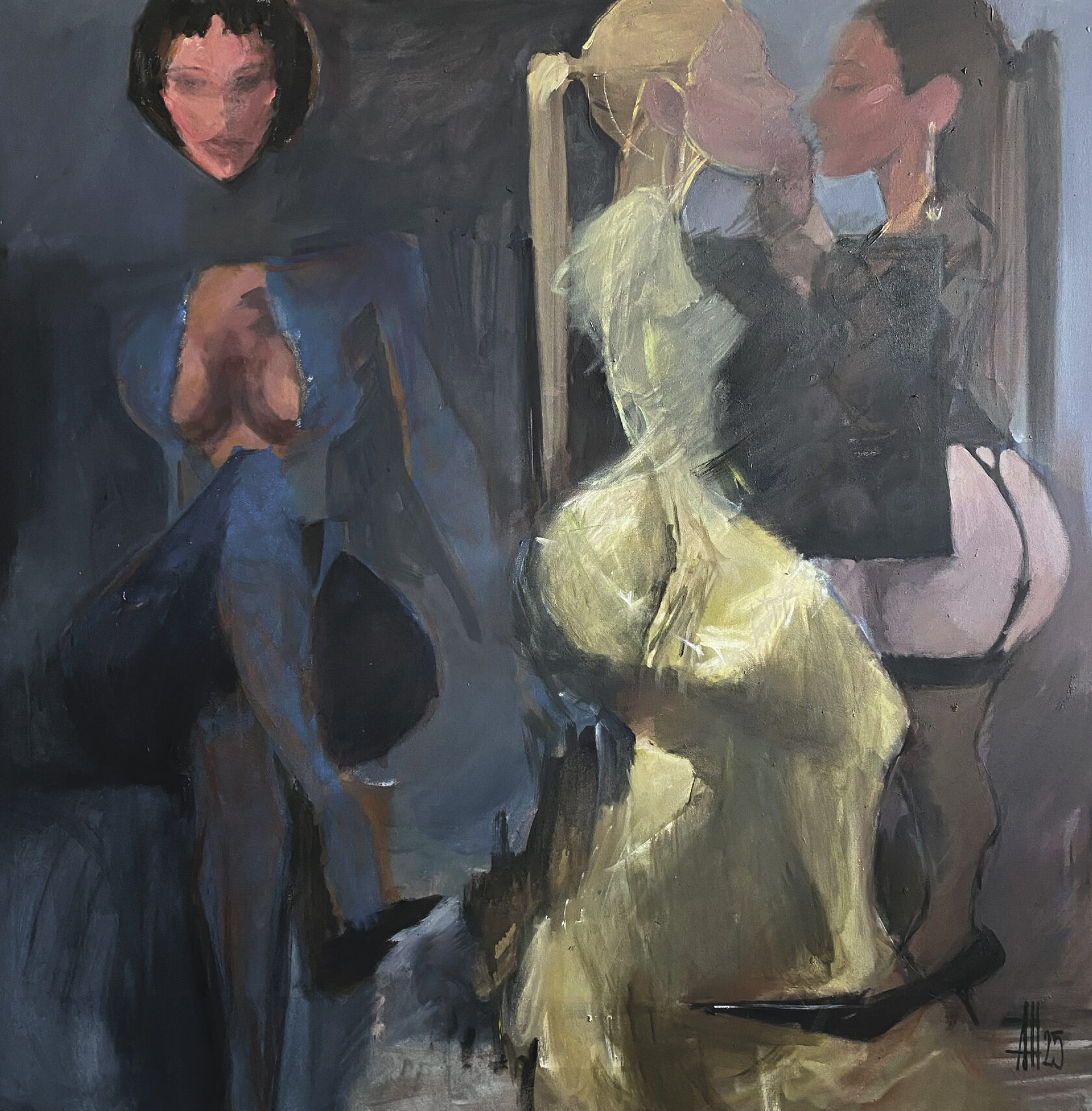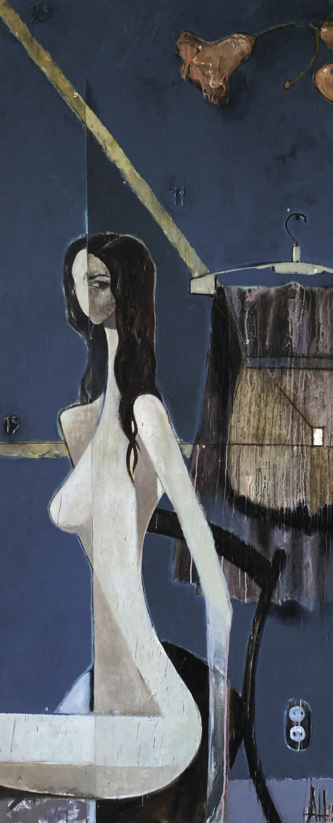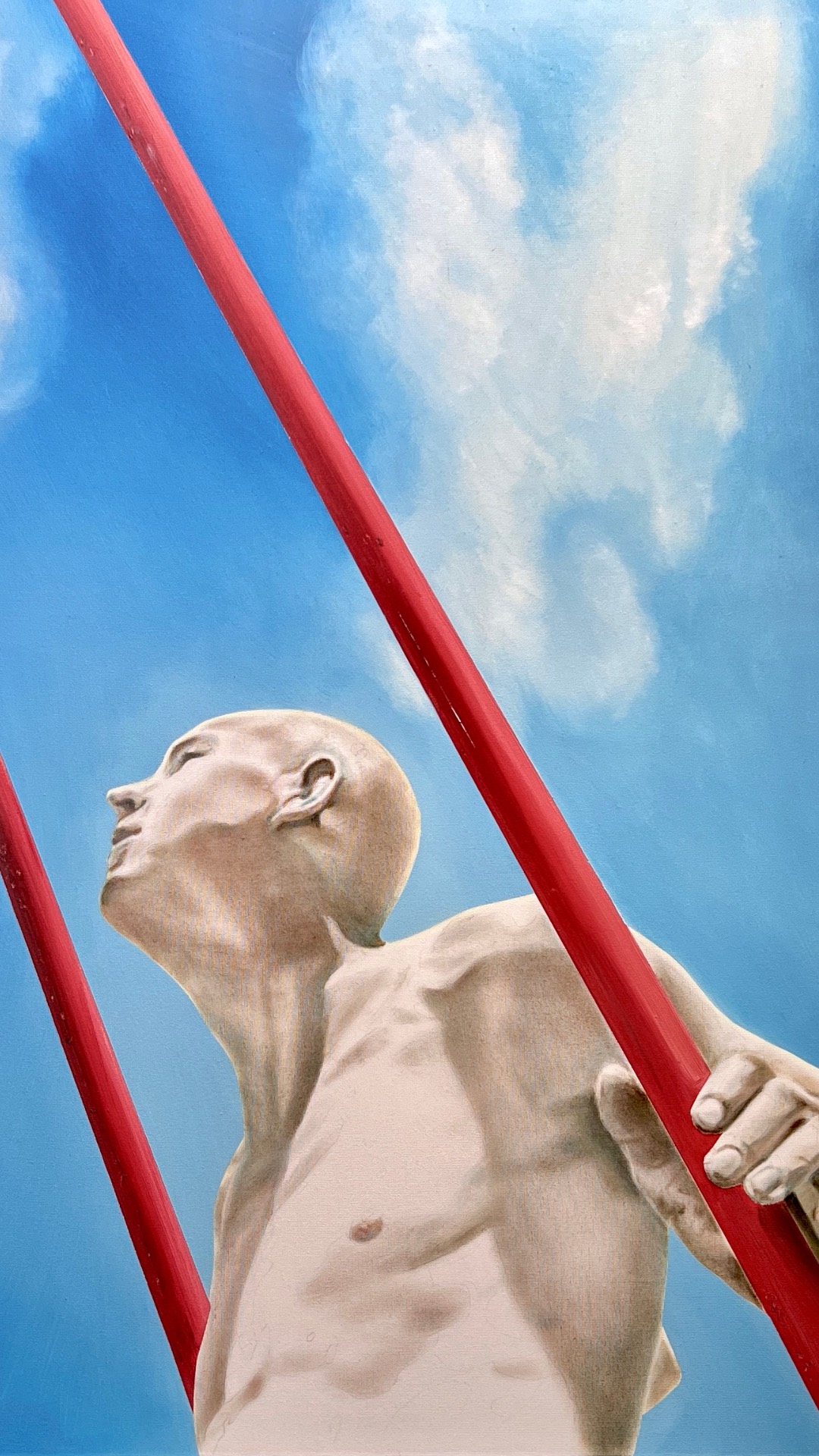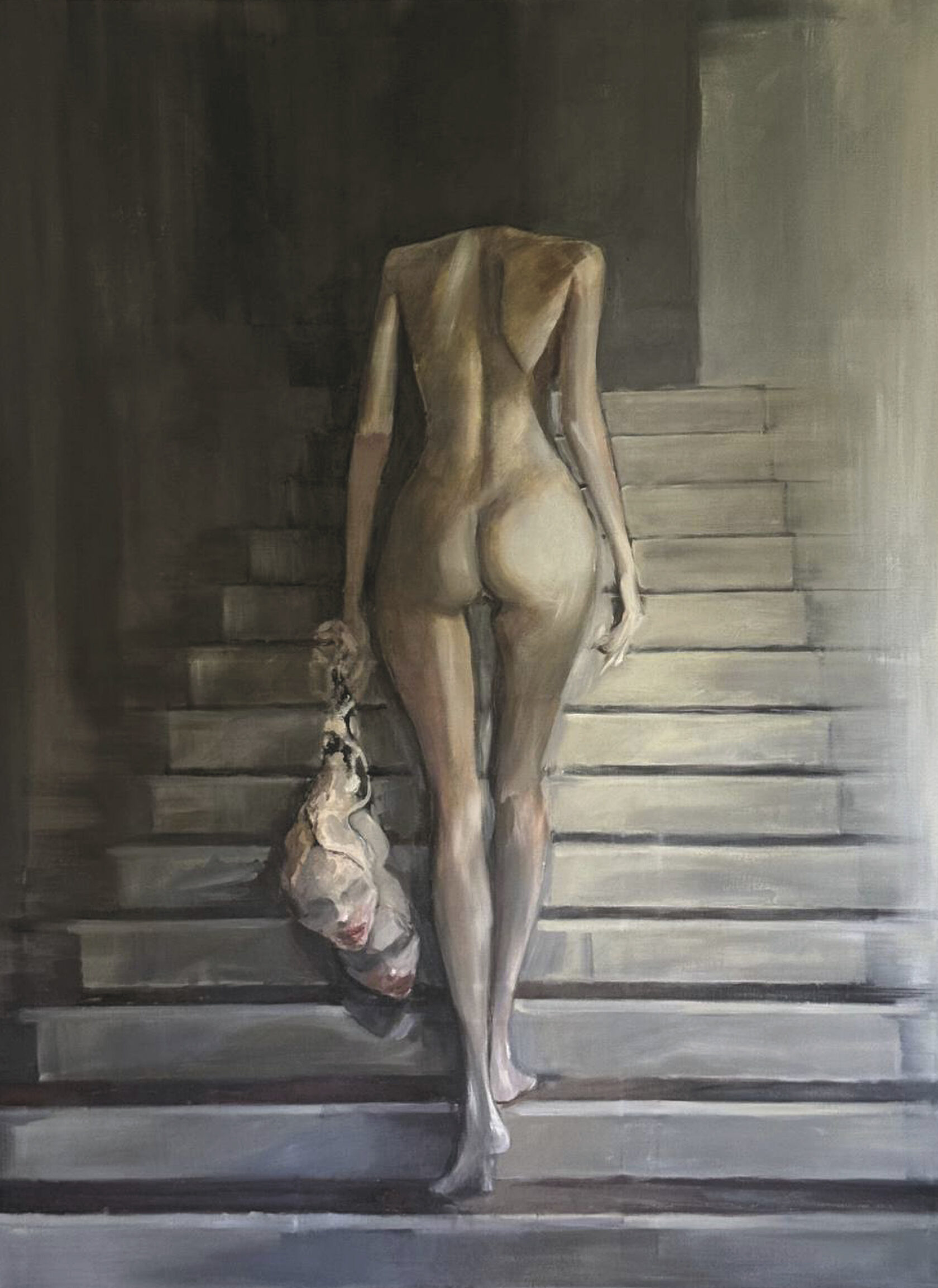 My artworks are the result of an intentional fusion of an academic approach to oil painting with the graphic precision of architectural sketches. I use this combination to reveal motion within the stillness of human figures — a vital tool for exploring balance between opposing states.